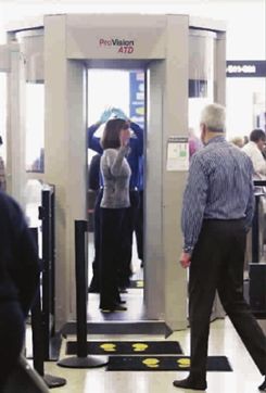 除了上面所見(jiàn)的那種普通的安檢門之外,現(xiàn)在國(guó)內(nèi)外的某些機(jī)場(chǎng)還會(huì)配備人體掃描儀。人體掃描儀能對(duì)人體實(shí)行比安檢門更詳細(xì)的檢查。人體掃描儀利用的也是一種電磁波。這種電磁波是一種毫米波段的遠(yuǎn)紅外的電磁波。這個(gè)波長(zhǎng)的電磁波單位時(shí)間內(nèi)振動(dòng)頻率比可見(jiàn)光還低,輻射強(qiáng)度很小,幾乎不會(huì)對(duì)人體造成危害,成為人體掃描儀的理想波段。